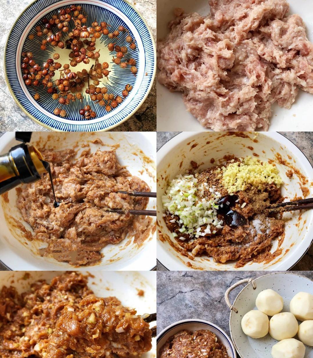 肉馅调味秘籍:生抽、老抽上色提鲜,蚝油增香,再来点花椒水去腥增味,顺着一个方向搅打,让肉馅吸饱汁水。料酒去腥,葱姜末提香,十三香、食盐、鸡精适量添加,调出那让人一闻就流口水的味道!