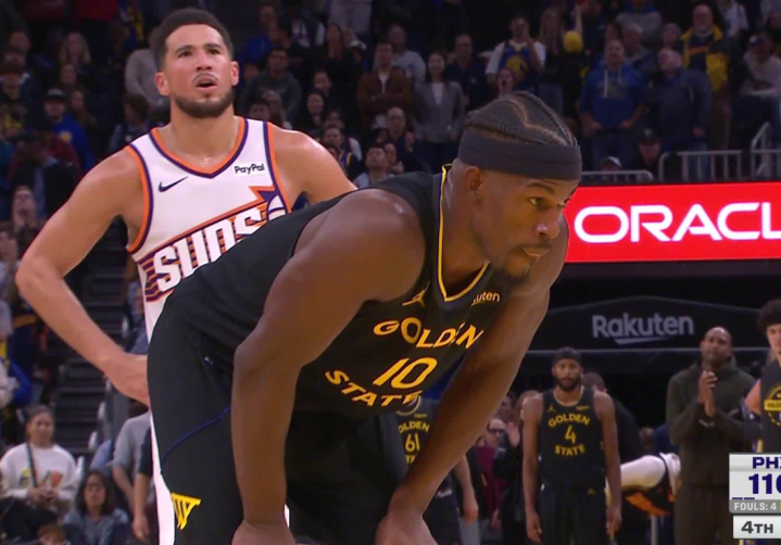 裁判也没见过这种事,你要,给你咯,然后把他驱逐了。中段博斯特和斯潘塞接连命中三分,理查德冲击力十足,内突外投联合库里不断缩小分差。节末波杰和理查德继续上分,半场勇士64-67太阳。巴特勒大空位三分球反超,随后无球空切暴扣打停太阳。中段穆迪和佩顿接连外线开火,布克单打不断回应。后半段巴特勒和理查德连续外线轰炸,三节打完,勇士93-87领先太阳。进入第四节,库里撤步三分+喂饼佩顿,桑托斯继续轰三分球,太阳连续不断的失误,不过布克和狄龙两人带队咬住比分。